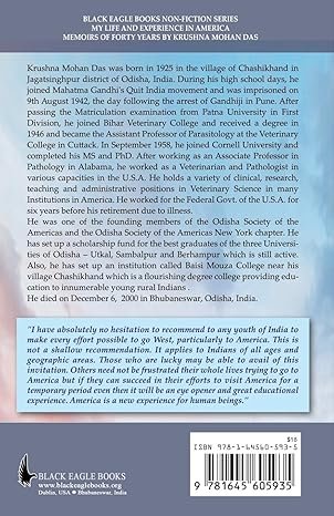 Krushna Mohan Das was born in 1925 in the village of Chashikhand in Jagatsinghpur district of Odisha, India. During his high school days, he joined Mahatma Gandhi’s Quit India movement and was imprisoned on 9th August 1942, the day following the arrest of Gandhiji in Pune. After passing the Matriculation examination from Patna University in First Division, he joined Bihar Veterinary College and received a degree in 1946 and became the Assistant Professor of Parasitology at the Veterinary College in Cuttack. In September 1958, he joined Cornell University and completed his MS and PhD. After working as an Associate Professor in Pathology in Alabama, he worked as a Veterinarian and Pathologist in various capacities in the U.S.A. He holds a variety of clinical, research, teaching and administrative positions in Veterinary Science in many Institutions in America. He worked for the Federal Govt. of the U.S.A. for six years before his retirement due to illness.He was one of the founding members of the Odisha Society of the Americas and the Odisha Society of the Americas New York chapter. He has set up a scholarship fund for the best graduates of the three Universities of Odisha – Utkal, Sambalpur and Berhampur which is still active. Also, he has set up an institution called Baisi Mouza College near his village Chashikhand which is a flourishing degree college providing education to innumerable young rural Indians.He died on December 6, 2000, in Bhubaneswar, Odisha, India.