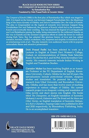 The Conquest of Kanchi (1880) is the first play of Ramshankar Ray which was staged in 1881. It is based on the historic war between Gajapati Purushottam Dev, the illustrious king of the Surya dynasty of Odisha; and Saluva Narasimha Dev, the ruler of Kanchi. The play is foregrounded on the legend of romantic love between Gajapati King Purushottam Dev and Padmavati, the princess of Kanchi which led to the invasion of Kanchi and eventually their wedding. Ray has retained the legend of Lord Jagannath and Lord Balabhadra joining the battle, being entertained by the milkmaid Manika on the way to Kanchi and the minister’s ingenious efforts to unite the lovers in wedlock during Rath Yatra. Ray has adapted this glorious history of love and has added romance, heroism, conflict, excitement, war, suspense and surprise to transform it into an entertaining work of art. The play instantly won audiences’ hearts with its popular nationalistic theme and attractive presentation.